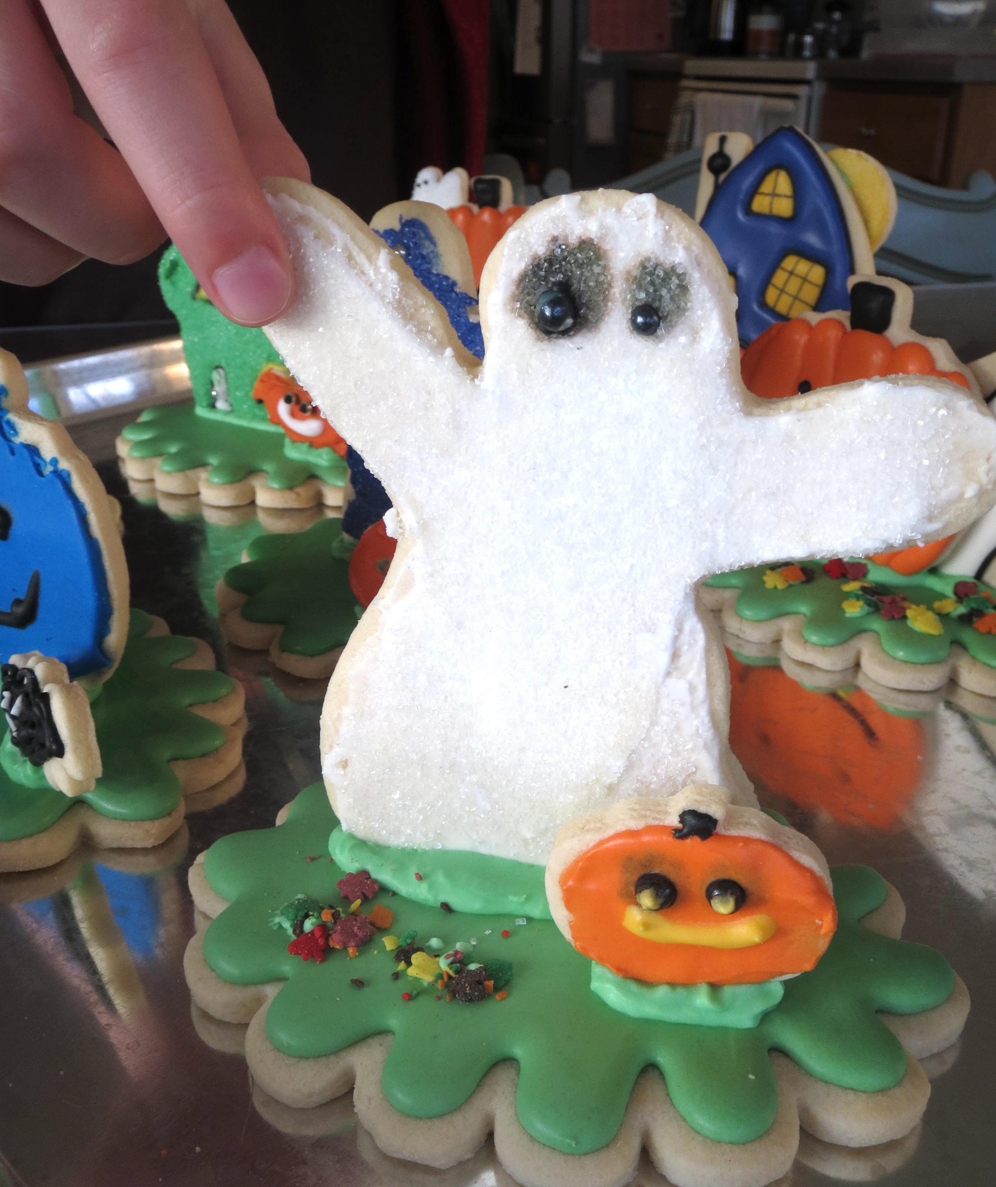 Some cookies needed a little help to stand. I used a microplane to shave off the bottoms and extra support came from the aid of a toothpick.